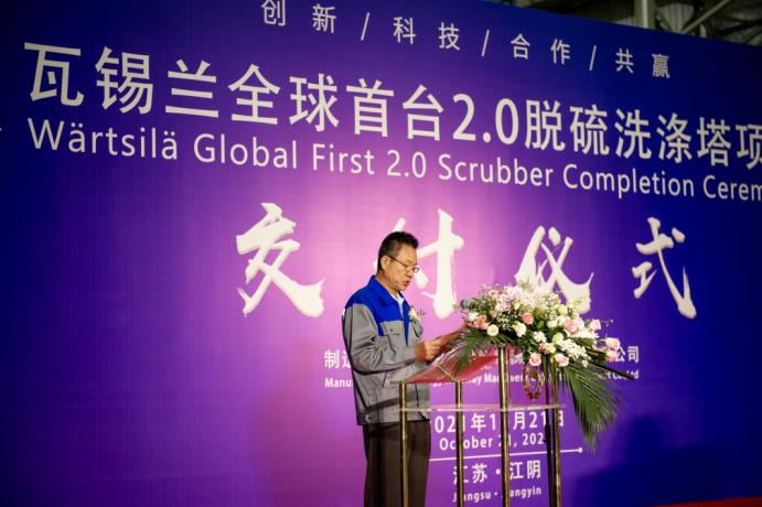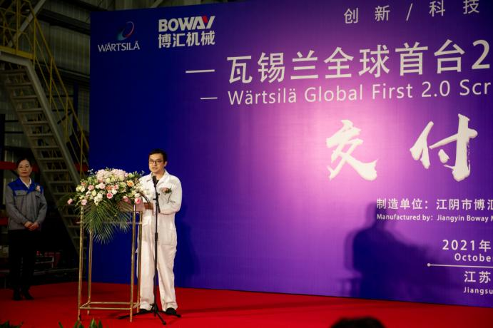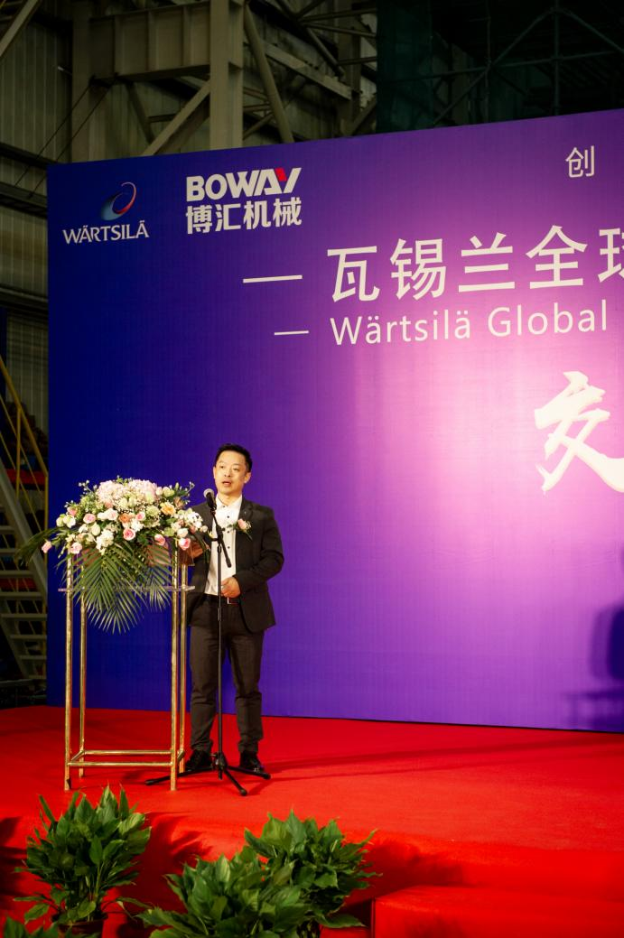 這樣的新設(shè)計(jì)新產(chǎn)品需要通過(guò)良好的建造技藝來(lái)實(shí)現(xiàn),博匯是瓦錫蘭的重要合作伙伴和戰(zhàn)略供應(yīng)商,很高興首臺(tái)商用2.0洗滌塔能在博匯順利完成建造, 這離不開在座每一位的辛苦努力和團(tuán)隊(duì)協(xié)作,這充分體現(xiàn)了博匯的價(jià)值以及團(tuán)隊(duì)能力。