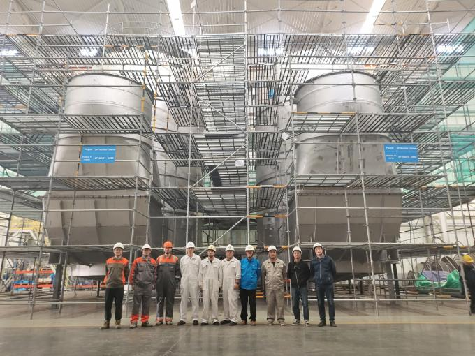 “經(jīng)過(guò)約100天緊張有序的制作安裝,我們迎來(lái)了今天這個(gè)重要時(shí)刻:瓦錫蘭全球首臺(tái)商用2.0洗滌塔的建造完成,這昭示著瓦錫蘭新系列洗滌塔取得了重要的階段性成果。