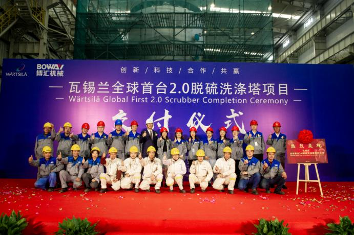 金風(fēng)玉露,春華秋實(shí)。在這成熟與收獲的季節(jié)里,在瓦錫蘭和博匯上下的齊心努力下,MSC全球首臺(tái)套脫硫塔2.0今天終于正式完工了,這是瓦錫蘭和博匯的一件大事,也是我們24100 TEUs項(xiàng)目重大的里程碑。在隆重舉行瓦錫蘭全球首臺(tái)脫硫塔2.0 FAT的歡樂(lè)時(shí)刻,我們?yōu)槭斋@與瓦錫蘭和博匯的友誼而倍感喜悅,同時(shí)更祝愿,瓦錫蘭的產(chǎn)品能為世界綠色航運(yùn)事業(yè)做出更大的貢獻(xiàn)!